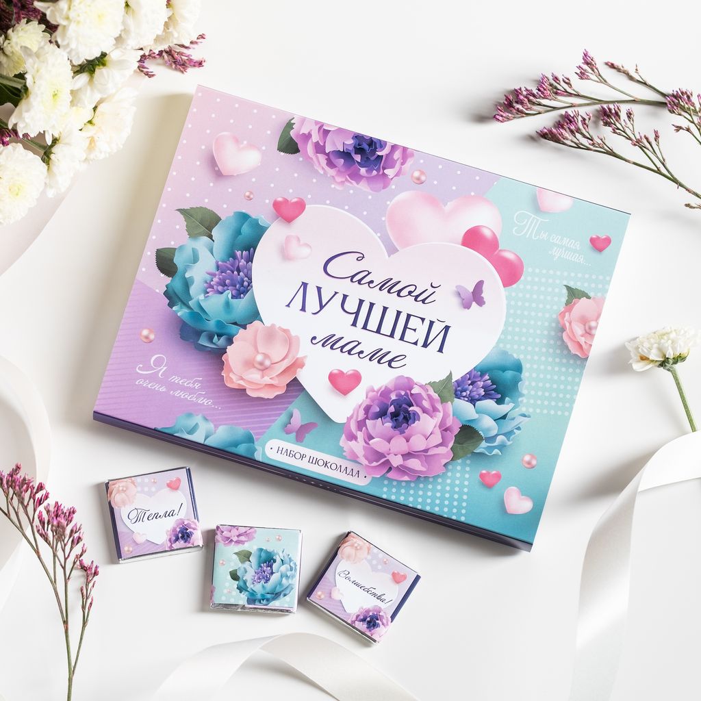 Набор 12 шоколадок "Самой лучшей маме (сиреневый с цветами)"