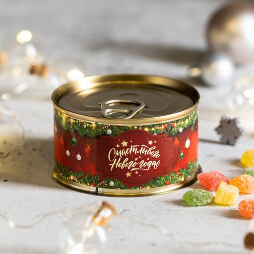 Монпансье в консервной банке "Счастливого Нового года!" (красная) 95 г.