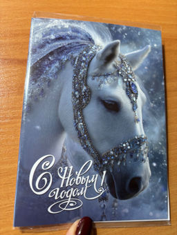 ?? Открытка 4 шоколадки "С Новым годом! (лощадь с синими украшениями)"