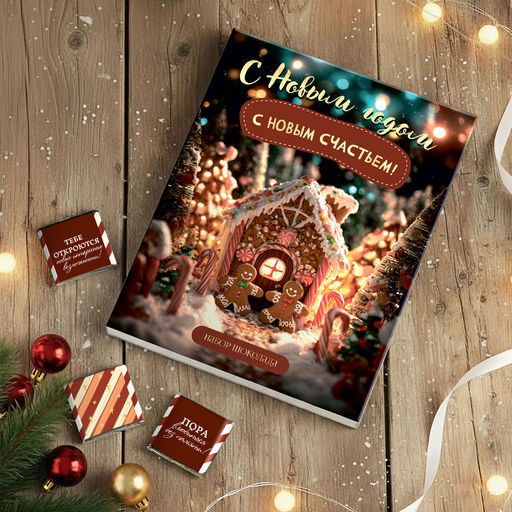 Набор 12 шоколадок "С Новым годом, с новым счастьем! (пряничный домик)"