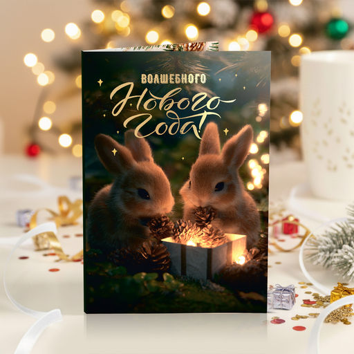 Открытка 4 шоколадки "Волшебного Нового года (зайки)"