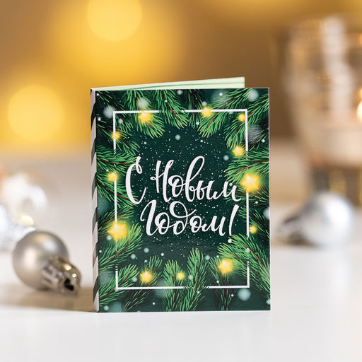 Цена за 2 шт Мини-открытка "С Новым годом (еловые ветви на зеленом)"