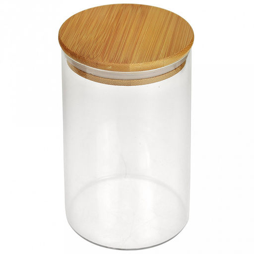 Банка стеклянная прижимная крышка "Натурель" 1,0л, д9,7см h15см, бамбуковая крышка с уплотнителем, в коробке (Китай)