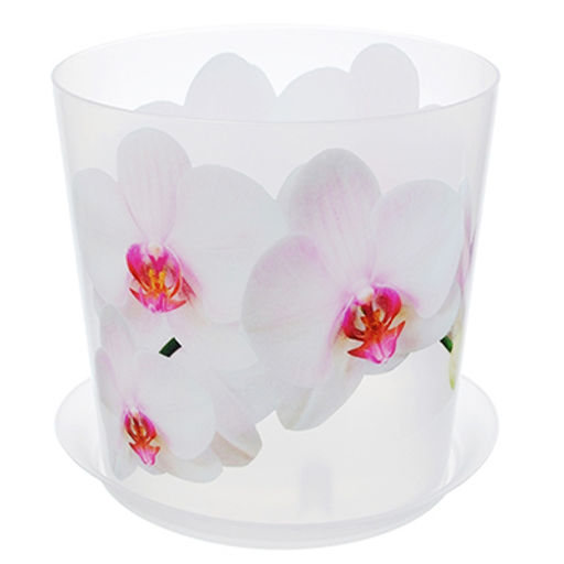 Кашпо для цветов пластмассовое "Деко" 1,2л, д12,5см, h12,5см, орхидея белая (Россия)