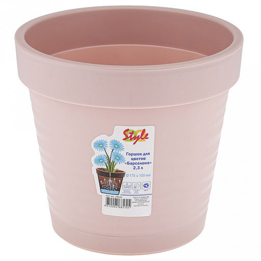Горшок для цветов пластмассовый "Барселона" 2,3л, со вставкой, пепельно-розовый (Россия)
