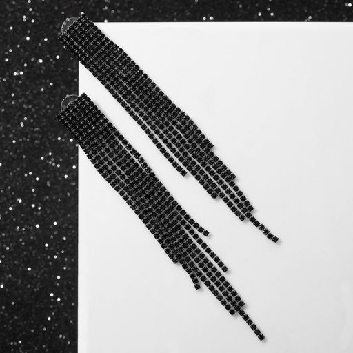Серьги висячие со стразами Водопад на прямоугольнике, цвет чёрный в серебре, 8 см