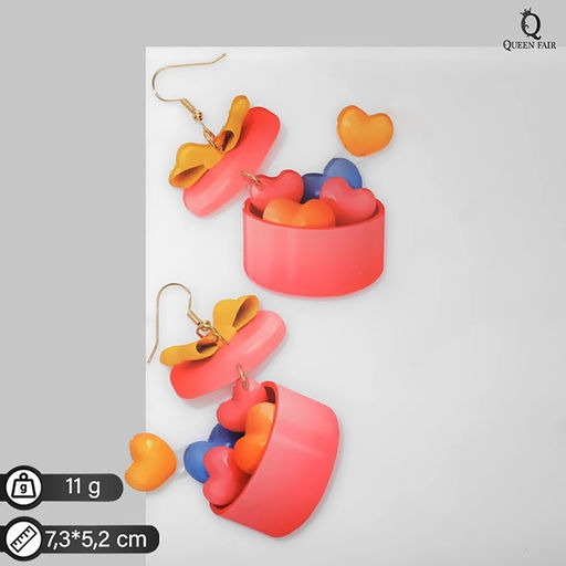 Серьги пластик Сердца коробочки, цветные в золоте