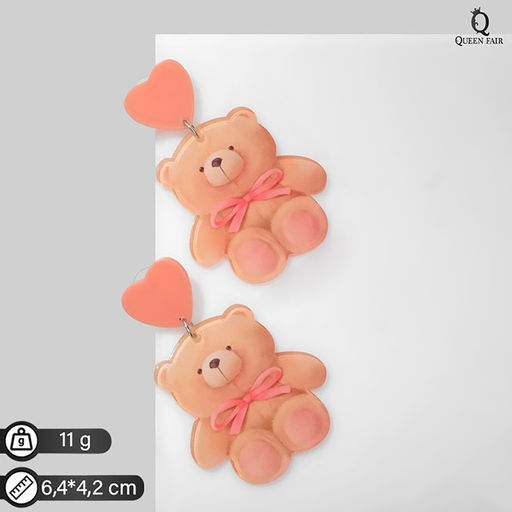 Серьги пластик Сердца мишки, цвет розово-бежевый в золоте