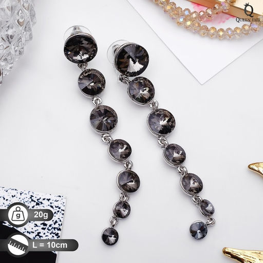 Серьги висячие со стразами Роскошь дорожка с кругами, цвет серый в серебре,10 см