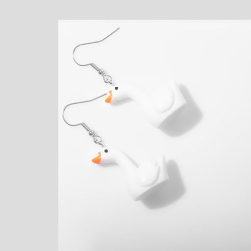 Цена за 2 шт. Серьги пластик Гуси, цвет бело-оранжевый в серебре