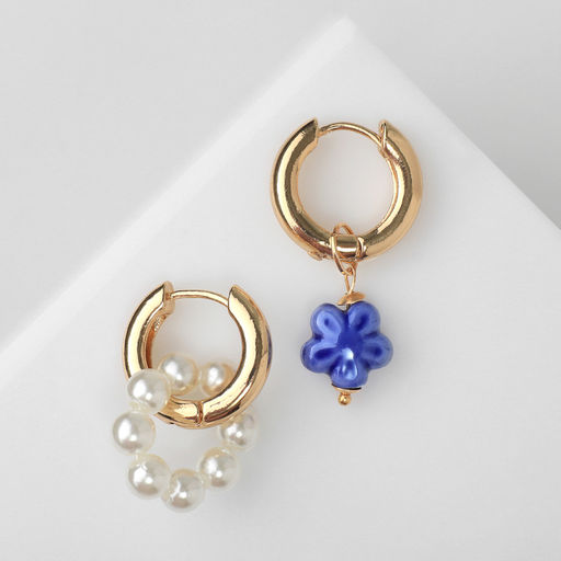 Серьги со съёмным элементом Трансформер цветок, цвет бело-синий в золоте