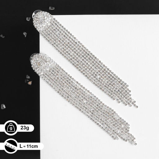 Серьги висячие со стразами Лёд полукруг, белые в серебре