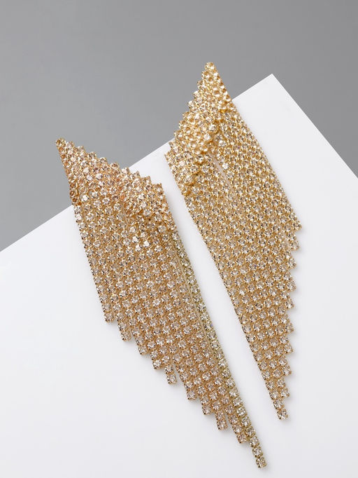 Серьги висячие со стразами Вечное сияние лесенка, белые в золоте