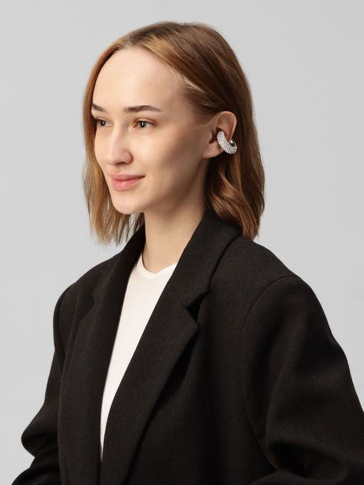 Цена за 2 шт. Серьги каффы Бублик, малые стразы, белые в серебре