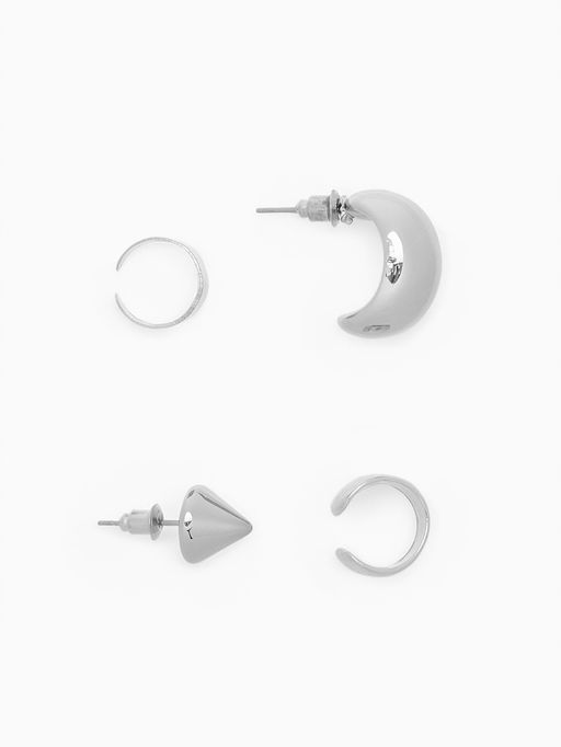 Серьги и кафф QF Объёмные фигуры, набор 4 шт. цвет серебро