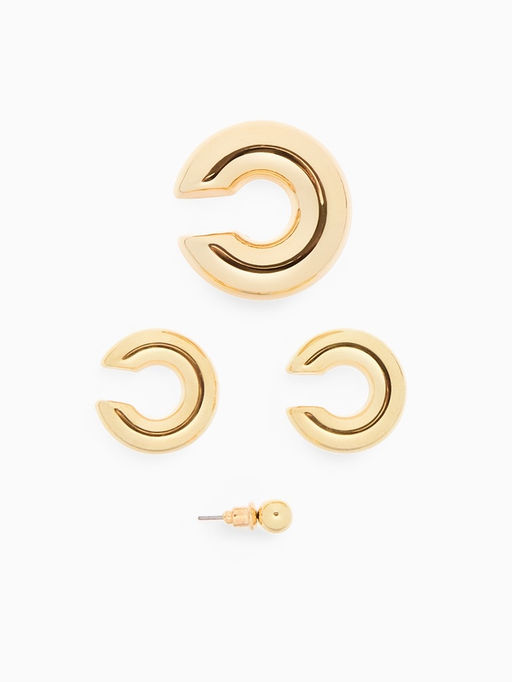 Серьги и кафф QF Бублики трио, набор 4 шт. цвет золото
