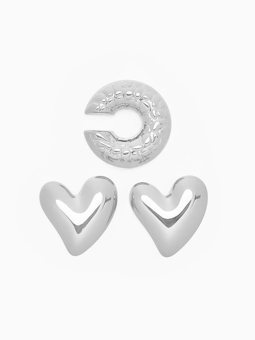 Серьги и каффы QF Сердечки, набор, бублик, цвет серебро