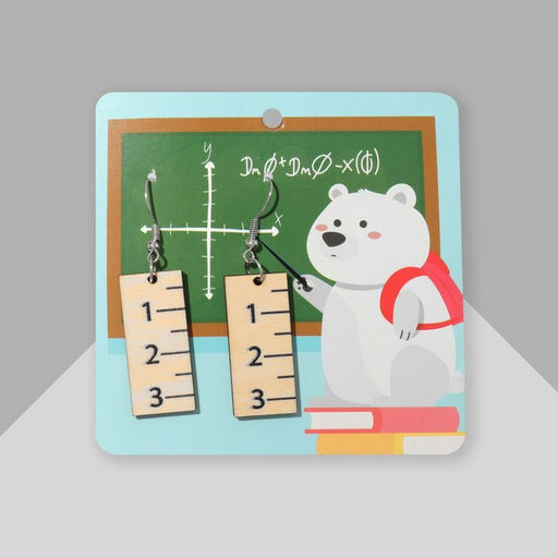 Серьги из дерева Школа линейка, цвет чёрно-бежевый в серебре