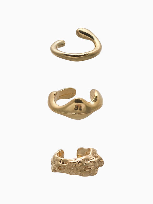 Серьги Каффы набор 3 шт., мятый, цвет золото