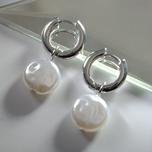 Серьги со съёмным элементом Трансформер жемчужный диск, цвет белый в серебре