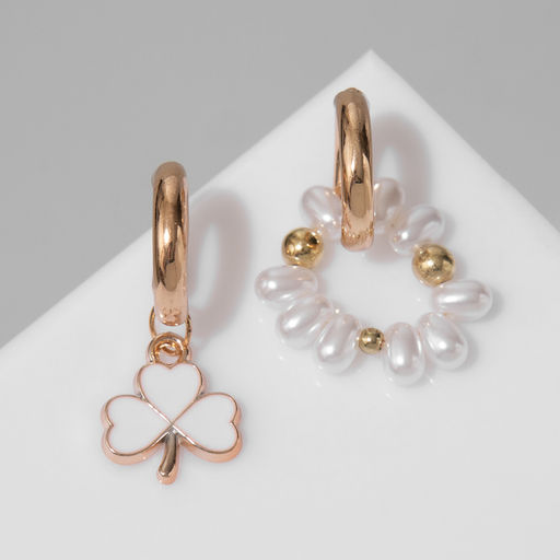 Серьги со съёмным элементом Трансформер клевер-сердце, цвет бело-бежевый в золоте