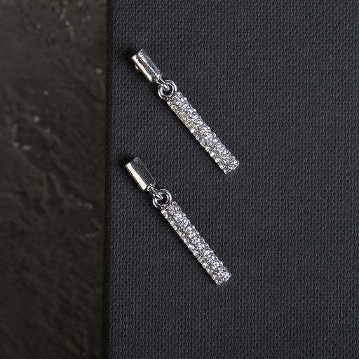 Серьги со стразами Геометрия тонкий цилиндр, белые в серебре