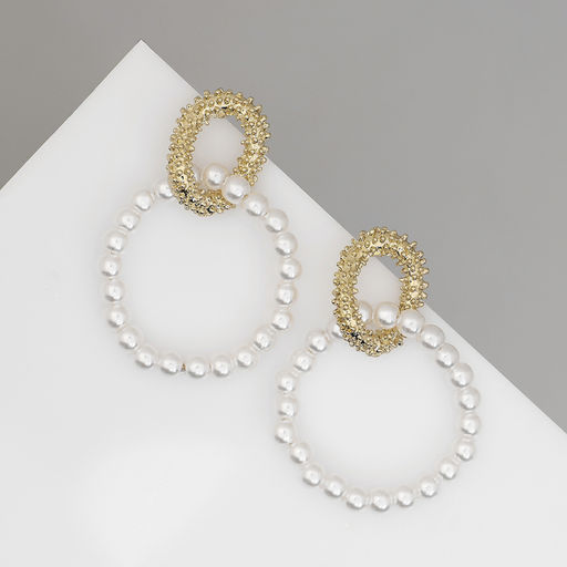 Серьги с жемчугом Бусина переплетение чувств, цвет золото