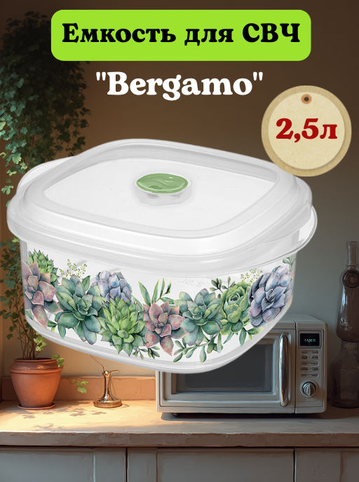 Емкость для СВЧ "Bergamo" 2,5л с клапаном с декором (бесцветный) 221199801/00