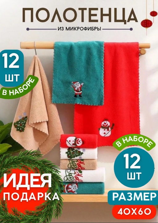 (цена за 12 шт в уп.) Новогодние полотенца 40х60 см в наборе из 12 штук