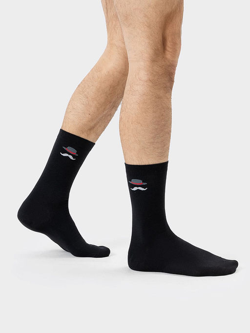 Цена за 5 пар! Носки мужские черные с рисунком в виде шляпы и усов