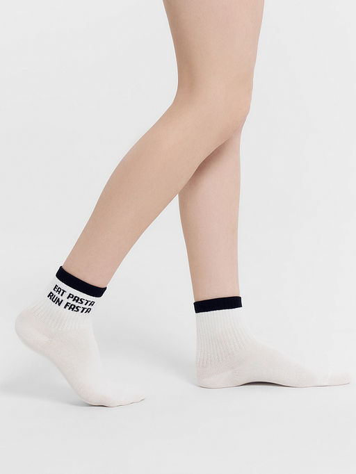 Цена за 5 пар! Носки женские белые с рисунком в виде надписи "EAT PASTA, RUN FASTA"