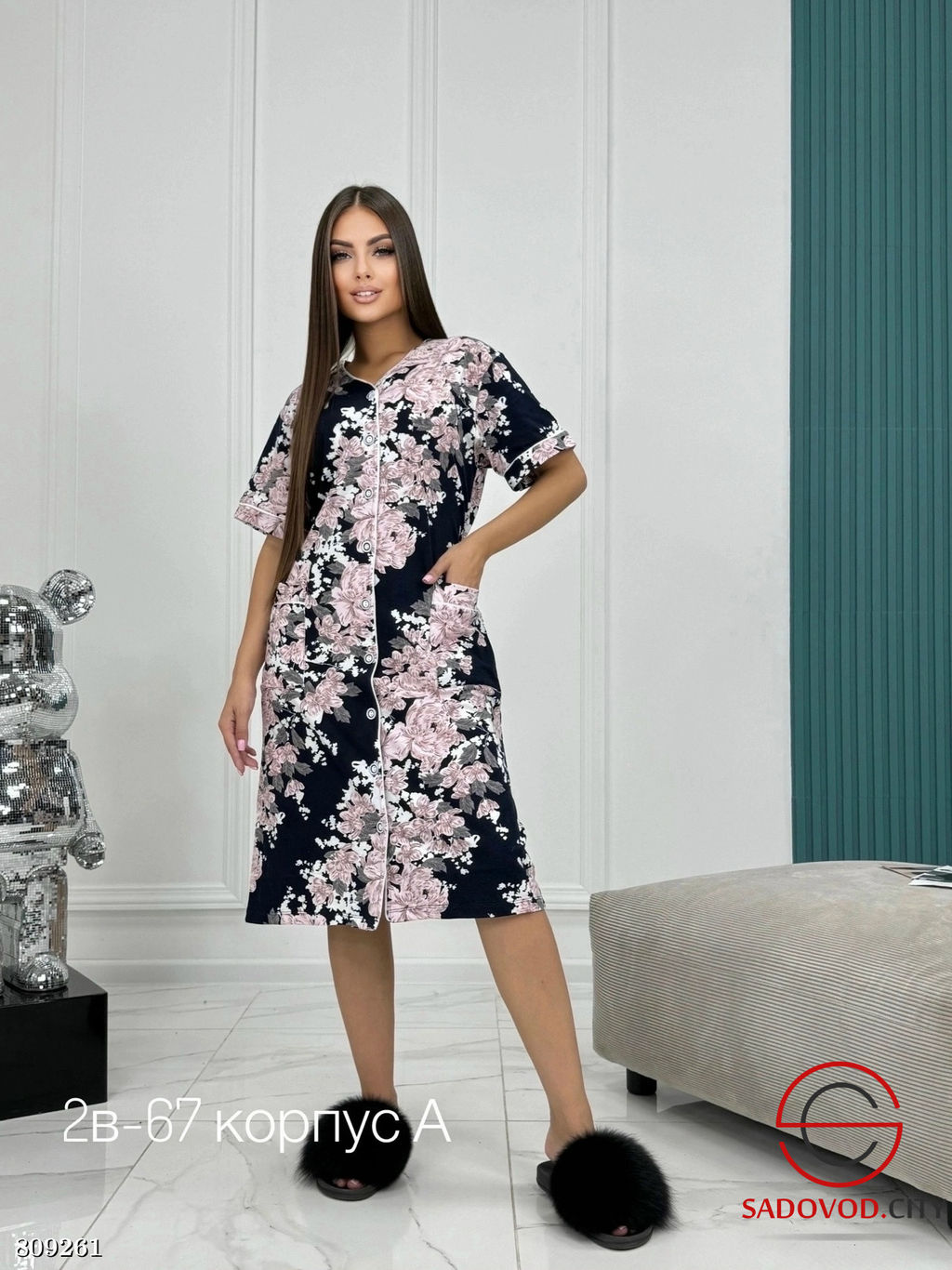 халат женский на пуговицах
