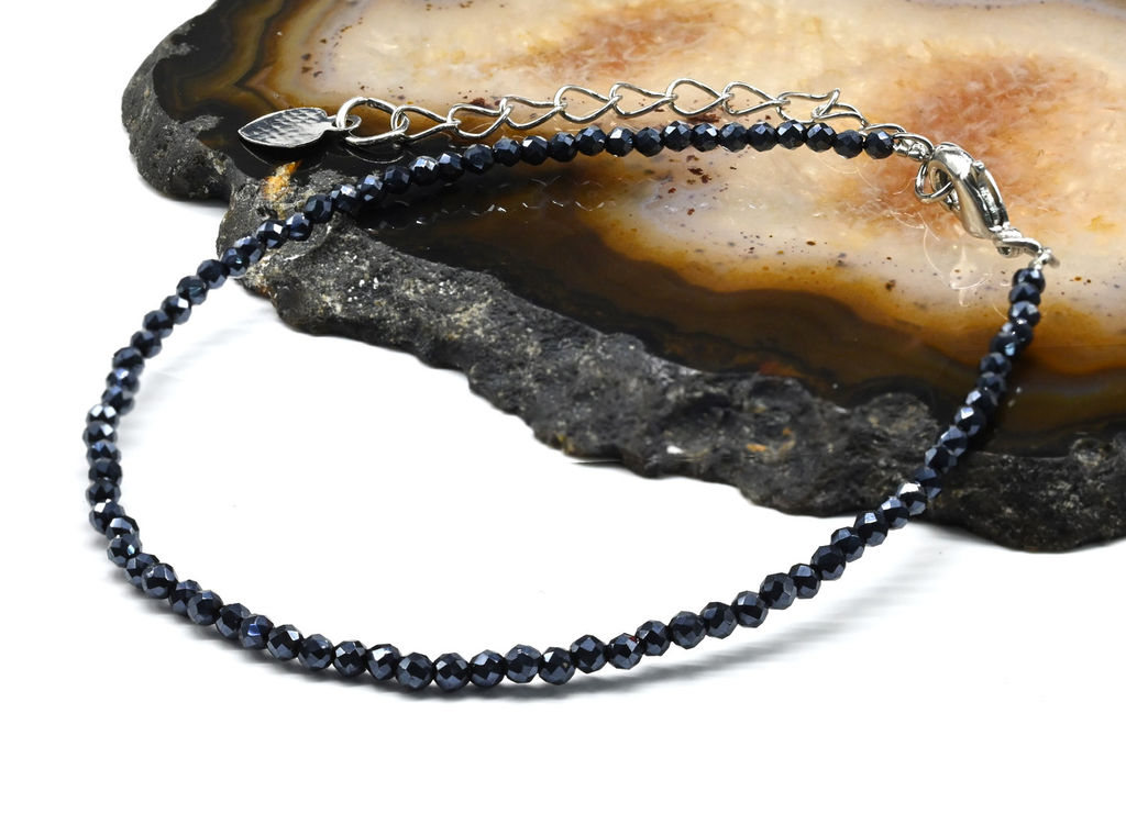 Браслет из циркона шарик гр.2мм цв.черно-синий, 19см Радуга камня