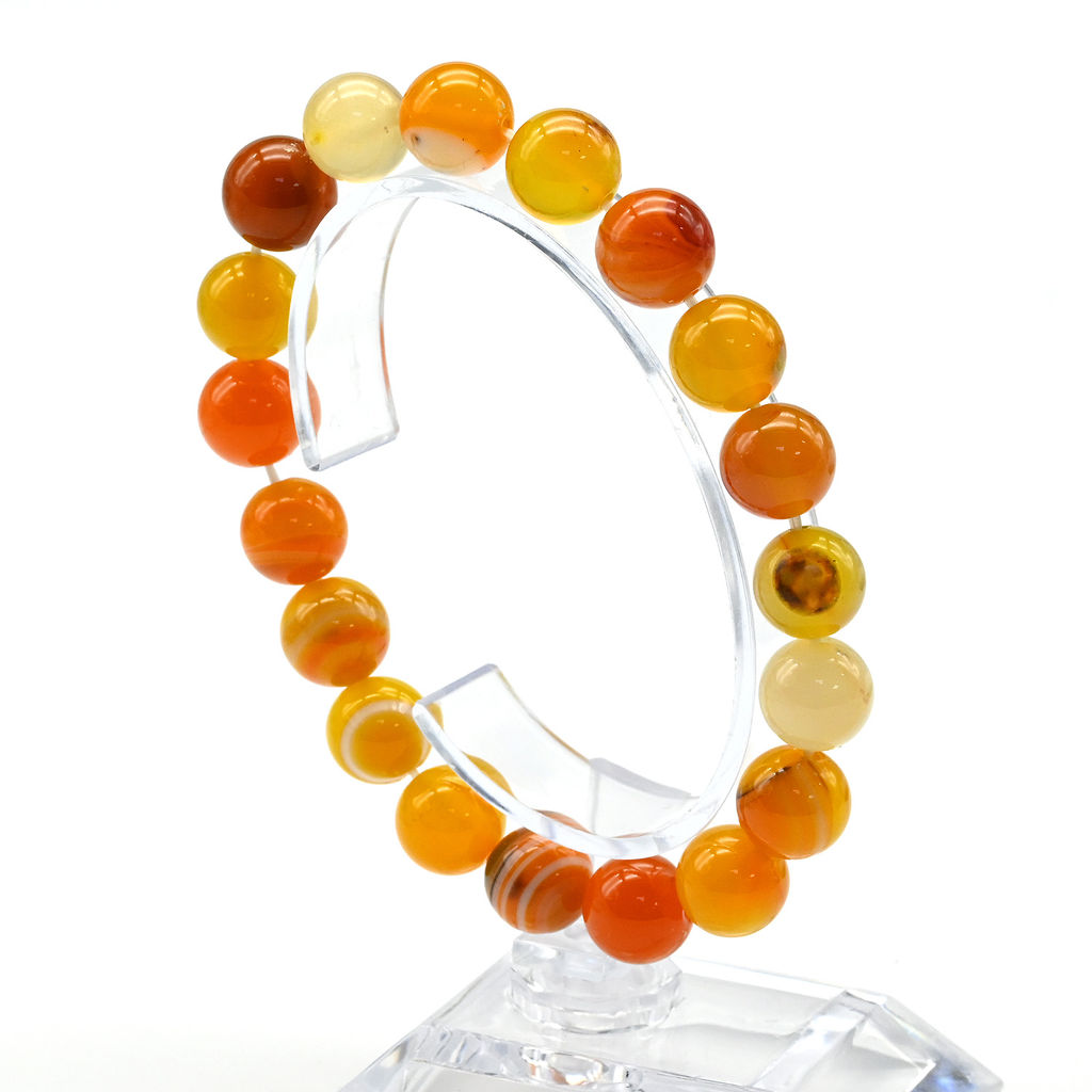 Браслет шарик 10мм из агата тонированного цв.оранжевый Радуга камня