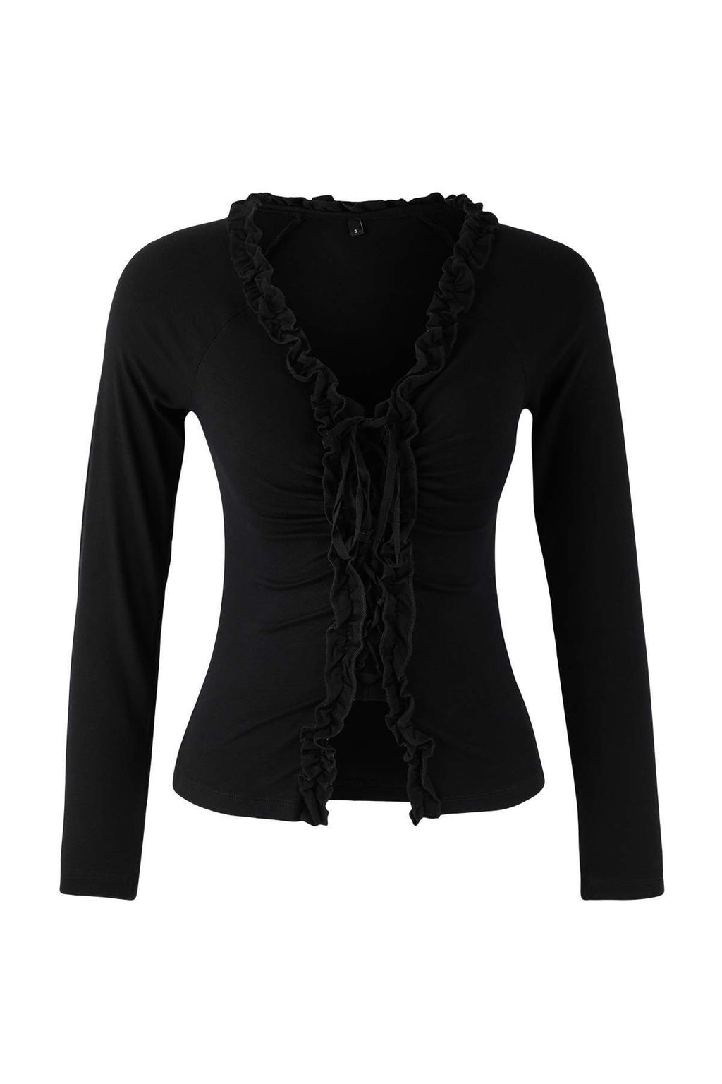 Siyah Fitted/Vucuda Oturan Buzgu/F?rf?r Detayl? Uzun Kollu Esnek Orme Bluz TWOAW26BZ00162