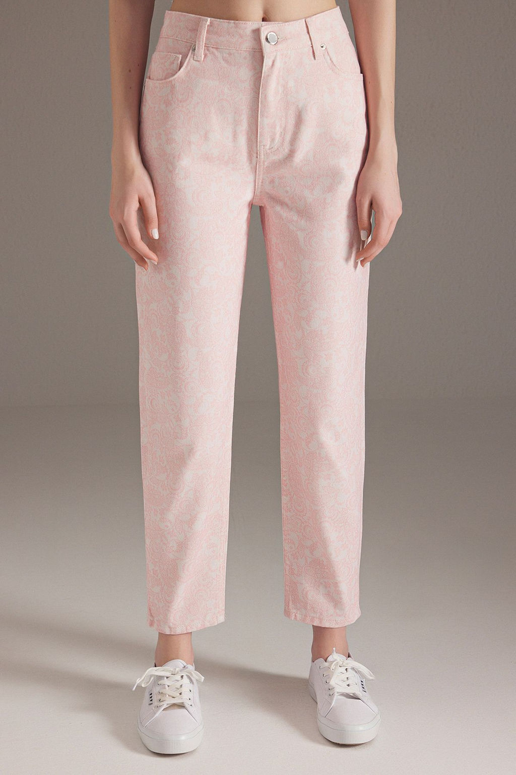 Pembe Sal Desenli Yuksek Bel Mom Jeans TWOSS25JE00237