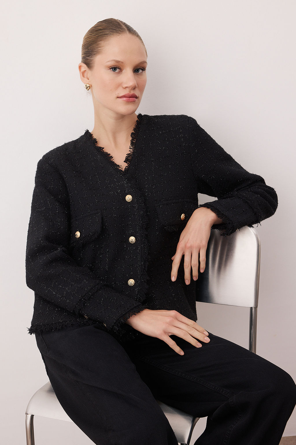 Siyah Simli Dokuma Tuvit Ceket TWOAW26CE00027