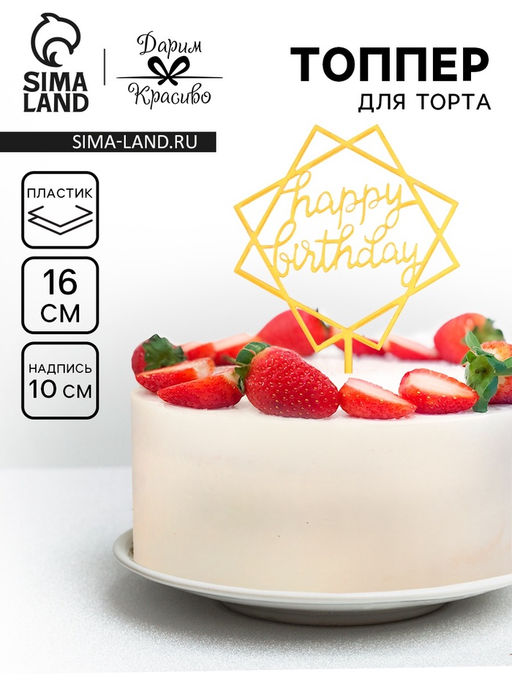 Цена за 3 шт. Топпер для торта День рождения, золото