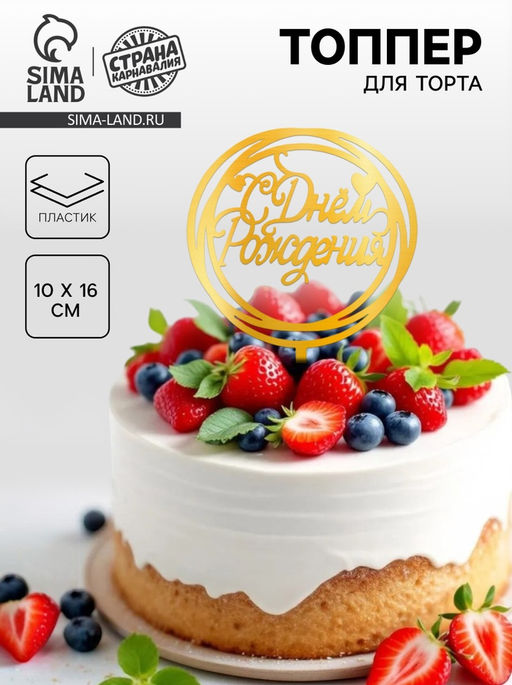 Цена за 2 шт. Топпер для торта С Днём Рождения, золотой