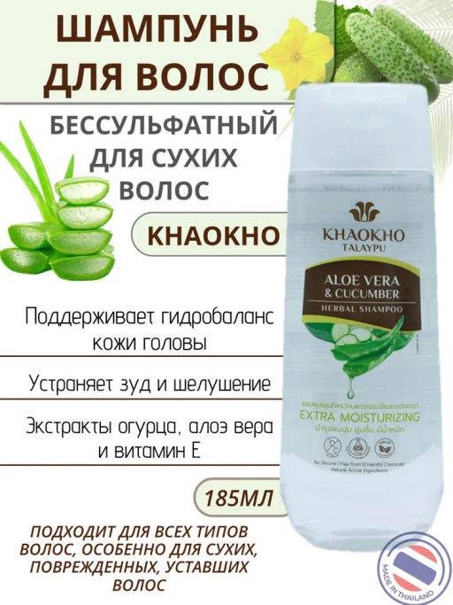 Шампунь Бессульфатный д/сухих Волос Алоэ и Огурец KHAOKHO185 мл