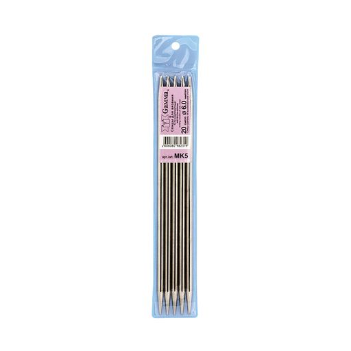Спицы GAMMA 5-ти компл. чулочные MK5 сталь d 6.0 мм 20 см 5 шт под никель