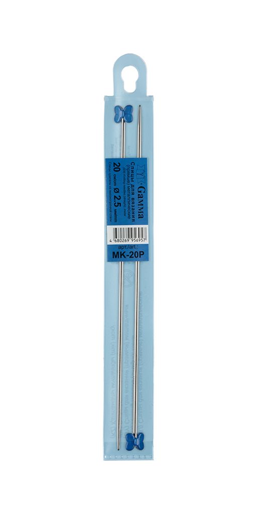 Артикул: Спицы GAMMA прямые MK-20P сталь d 2.5 мм 20 см 2 шт под никель