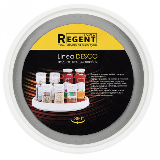 Поднос (подставка) пластмассовый "Desco" д25см, h3,3см, вращающийся, полипропилен, нескользящее покрытие, "Regent" (Китай)