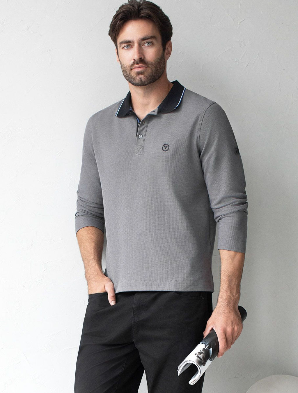 Лонгслив из фактурного трикотажа с плетеным воротником поло с застежкой на пуговицы