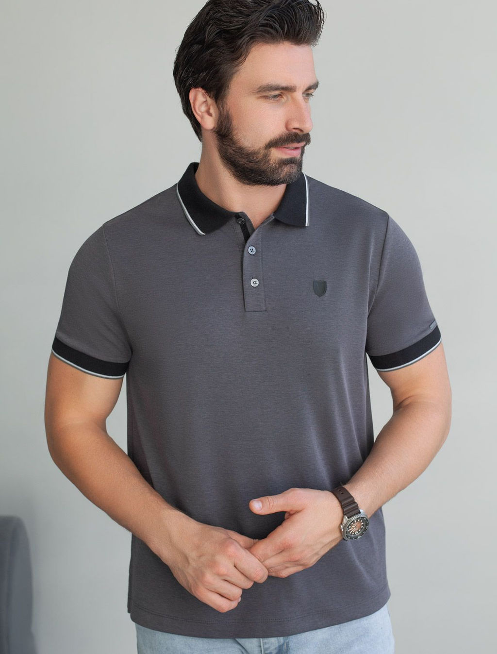 Футболка поло с воротником на пуговицах из полотна пике с меланжевым плетением с эластаном