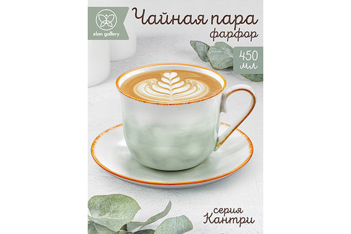 Чайная пара 2 пр. 450 мл 14*11*8,5 см "Кантри", зеленый, фарфор