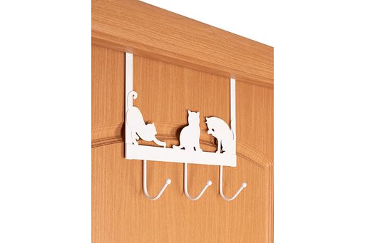 Вешалка на дверь навесная 3 крючка 28,5*11*25 см "Кошки" белая