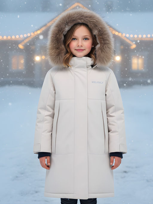 Парка зимняя подростковая для девочки с капюшоном и мехом бежевого цвета 9536B