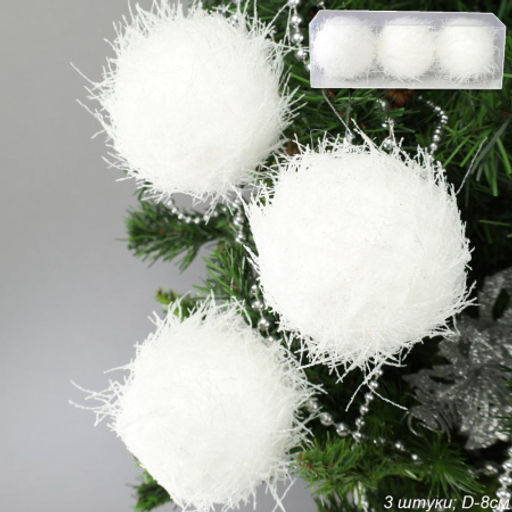Новогоднее украшение Шары 3 штуки 8 см / WF-191 /уп 128/белые