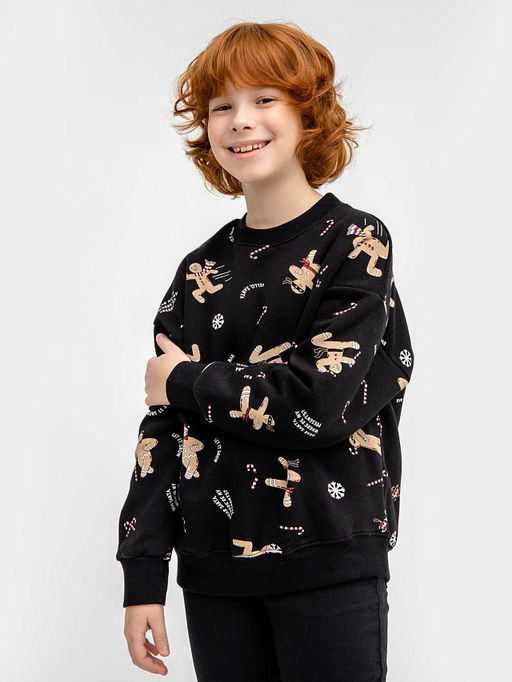 Свитшот для мальчиков в черном цвете с принтом "печенье"